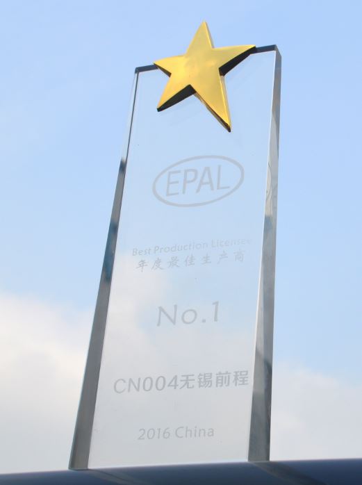 經過歐洲托盤協會的審核評定,前程公司榮獲EPAL 2016年度生產商第一名。會上,EPAL CEO Martim為前程公司頒發了獎杯。