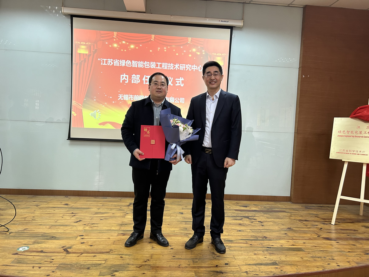 隨后徐穎總經(jīng)理與行業(yè)專家及教授們共同為“江蘇省綠色智能包裝工程技術(shù)研究中心”揭牌,并為專家教授團(tuán)隊(duì)及研究中心主要負(fù)責(zé)人授聘書。